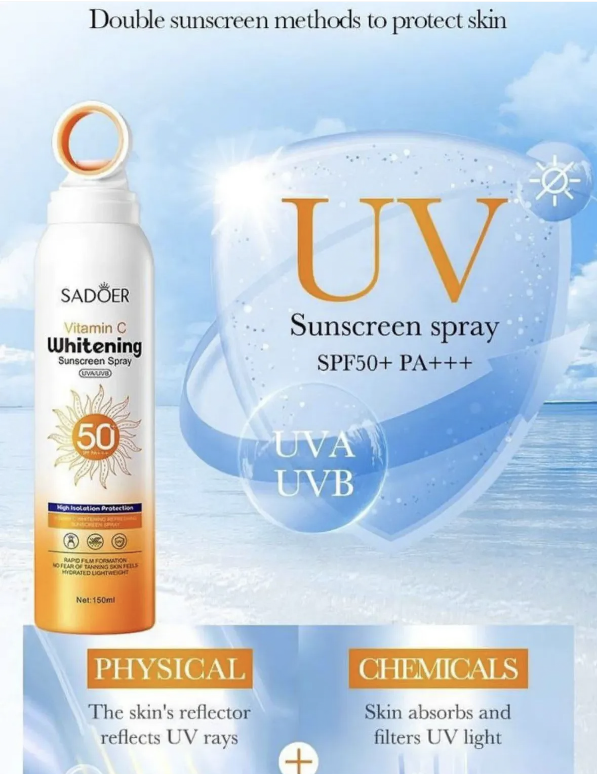 اسپری ضدآفتاب و آبرسان SADOER با سری گرد افشانهای که خیلی یکنواخت روی پوست پخش میشه، بدون چکه و بدون دردسر 💦